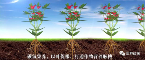 碳氢核肥通过捕集聚合空气中的二氧化碳富集叶茎周围,供作物吸收利用,增强光合作用,提高光合速率,夜间抑制光呼吸,合成叶绿素供作物生长,以叶促根,积累作物生长所必须的碳氢氧三要素,有效吸收、合成、转化土壤中的氮磷钾等有机成分,达到增产增收,恢复作物原生态品质的目的。碳氢核肥的应用是现代农业发展的趋势,是减肥增效、改良土壤、提质增收,提高人民健康水平,保障农业可持续发展的重要保障。
