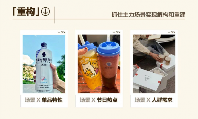 小红书作为趋势场景的策源地,始终关注消费者成长动向。根据小红书食品品类营销洞察,用户在食品选购上回归理性,产品综合性价比成为用户核心关注焦点;校园、工作以及早餐场景的受到用户广泛关注,品牌笔记产出多结合热点场景进行。这些趋向表明,食饮用户的消费动因逐步从“品类激发”转变为“场景激发,场景营销成为品牌竞争破局的关键。