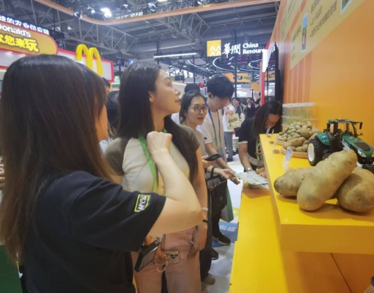 360平方米展示面积的麦当劳中国展台设置的打卡活动吸引了众多观众参与。展台上展示的试管苗、微型薯、种薯吸引了不少人的目光。
