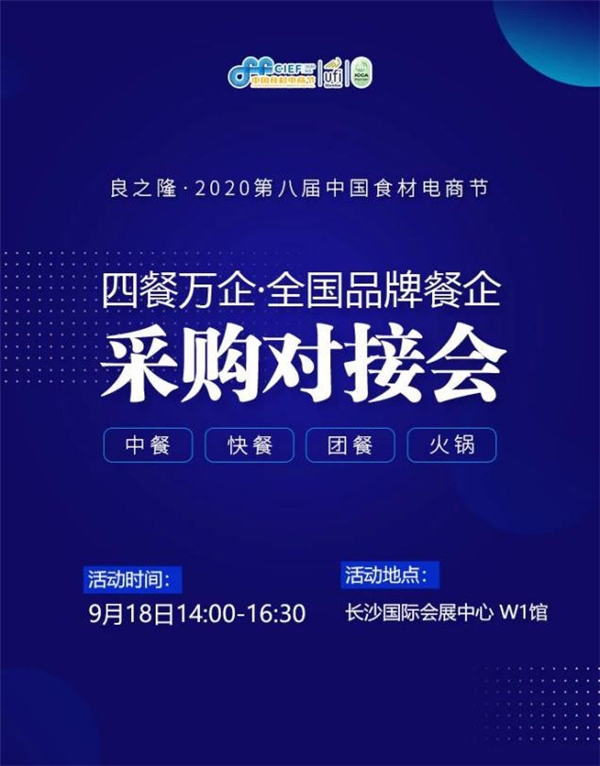 良之隆·2020第八届中国食材电商节,以超10万规模大展,20余场产业活动,更全品类,更多品牌,一站式解决方案,2020年9月18日-20日,在湖南长沙国际会展中心,携手与您共同打好年底翻身仗!