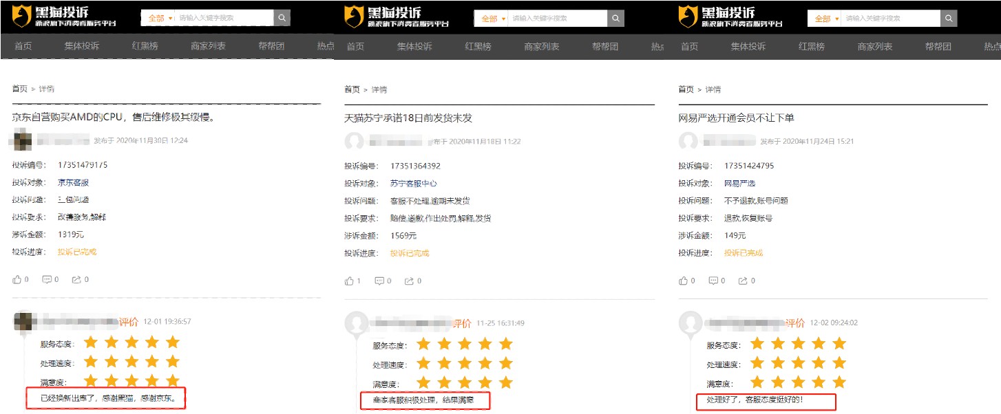 黑猫投诉作为新浪旗下的消费者服务平台,秉承“公益、公开、公正”的原则,依托新浪网和微博大数据搭建起消费者和商家之间的桥梁,解决消费纠纷。截至2020年11月底,黑猫平台有效投诉已突破300万,成为国内最大的第三方消费投诉平台。