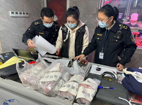 为加强辖区畜禽肉类经营监管工作,保障农产品质量安全,近日,浙江省舟山市市场监管局高新区分局对辖区15家畜禽肉类经营户开展现场检查,核对相关票据,查验肉类冻品并索证索票。