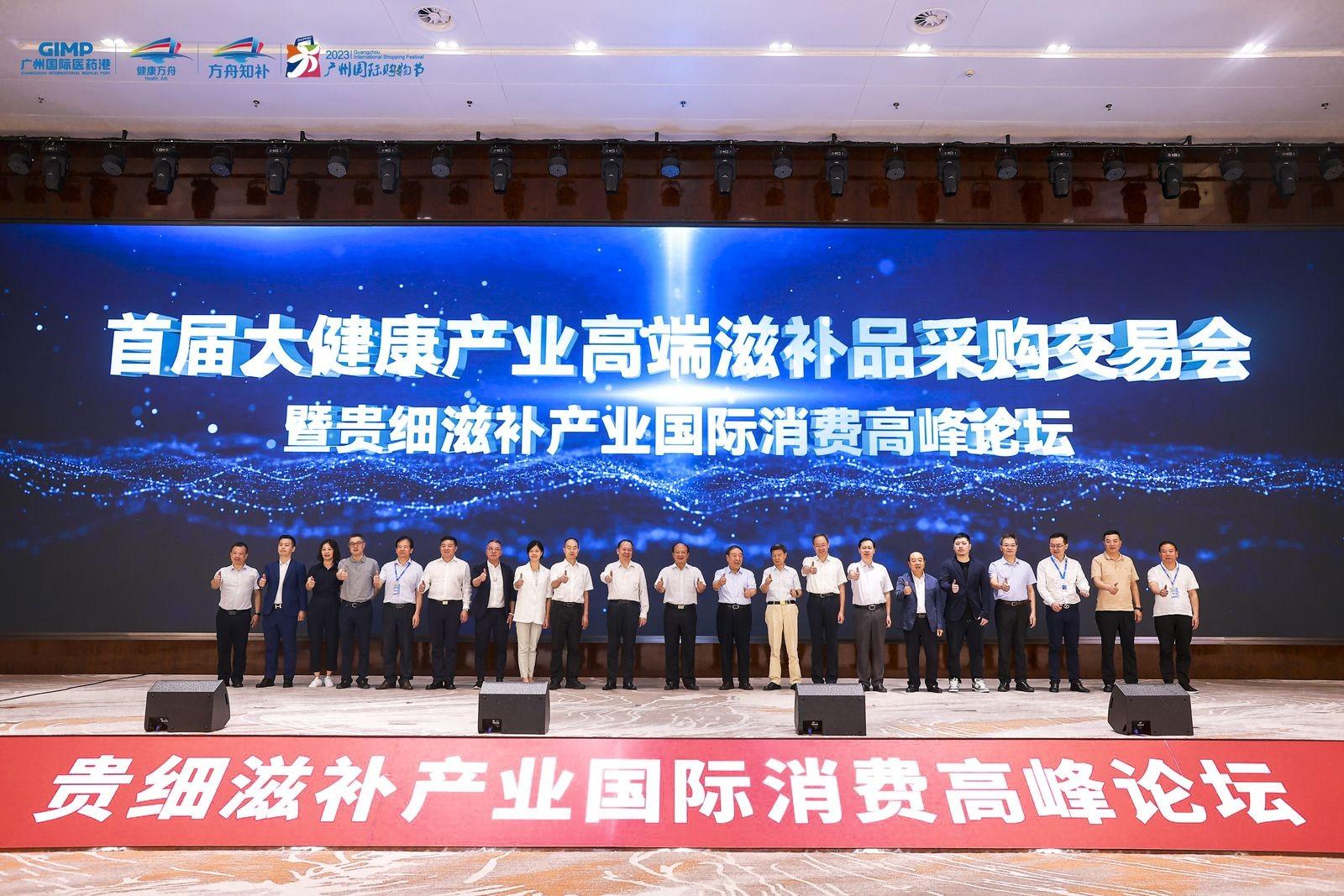 在现场领导和嘉宾的见证下,国医大师、政府各级领导、大健康产业主要商协会领导、各省市自治区驻广办事处领导和广州国际医药港集团领导一起上台,“大健康产业高端滋补品采购交易会暨贵细滋补产业国际消费高峰论坛”以及“中国道地药材·融湾出海”项目正式启动!