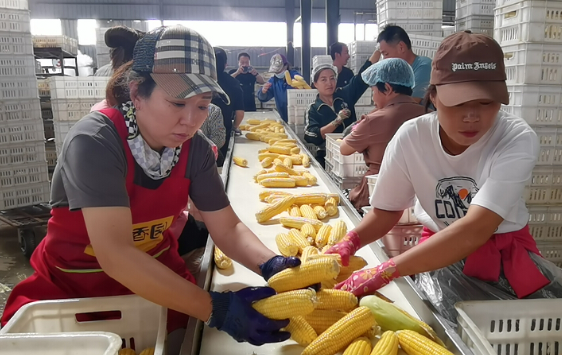 昊伟农庄工作人员在加工鲜食玉米