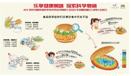 进餐饮活动。餐饮行业作为与公众日常接触最为广泛的行业,其餐饮场所、印刷品利用得当能够成为科普内容传播的有效媒介。学会连续5年与百胜餐饮合作开展科普进餐饮活动,将餐盘纸作为科普手段,开展食品科普宣传。2023年全国科普日期间,以“乐享健康美味 探索科学奥秘”为主题,将日常饮食中无处不在的食品科学知识传递给广大消费者。9月4日—10月1日,科普餐盘纸在全国9000多家肯德基餐门店同步发放,累计发放2126万张。