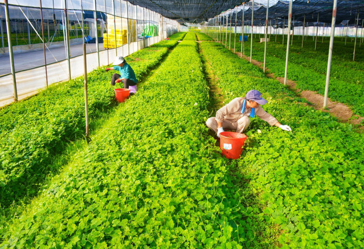 图为近日,农民在育种基地管护、分拣瓜蒌苗。