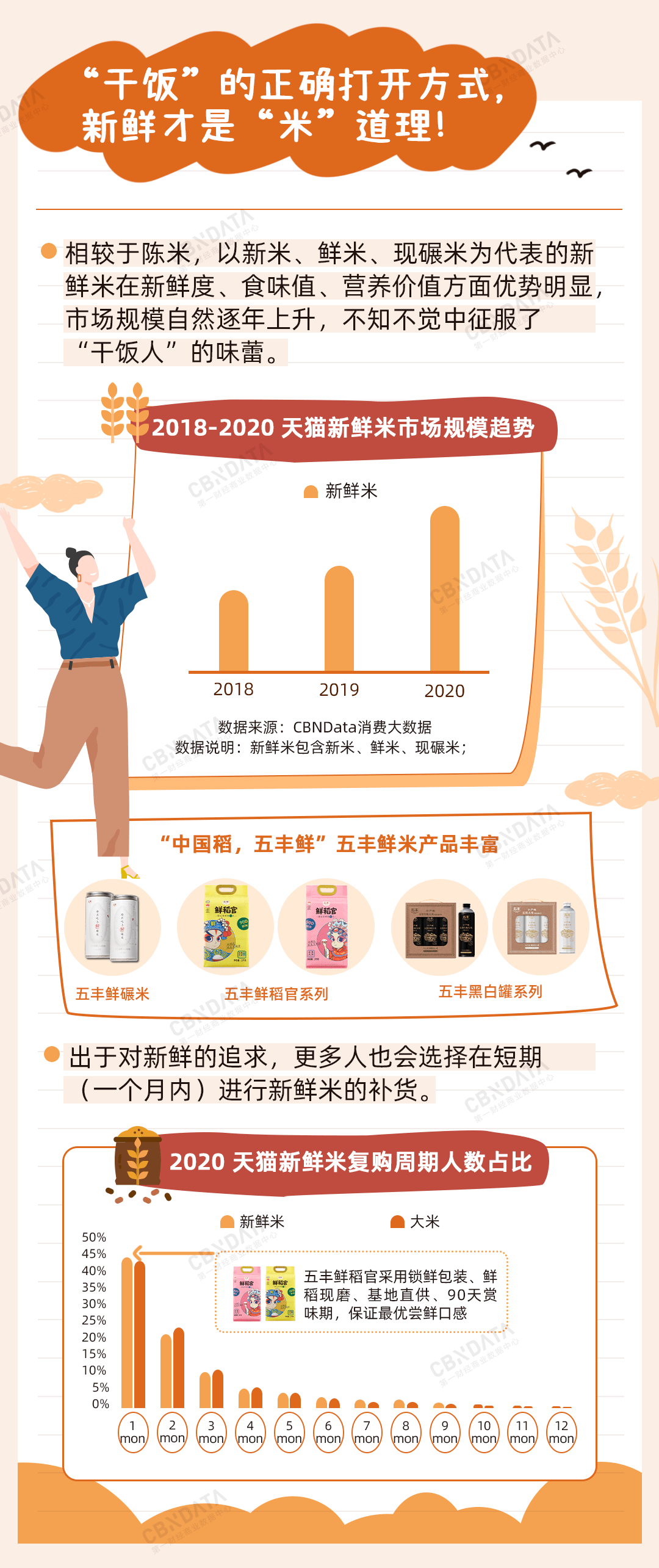 6月9日,第一财经商业数据中心(CBNData)联合天猫及五丰发布《2021天猫大米消费白皮书》(以下简称《报告》,点击阅读原文查看完整报告),基于CBNData消费大数据,《报告》洞察了线上大米市场发展现状,消费者购买行为特征,并分析了大米产品的消费新趋势。