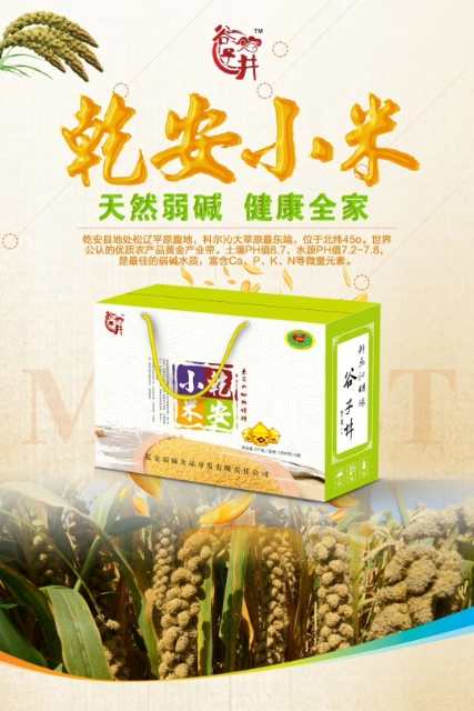 “谷子井”小米以及碱性农副产品源自碱土地—乾安县,是中国国家地理标志保护品种。乾安县具有天然的黑土地,黑钙土质肥沃,碱土面积较大且分布范围广泛,与草甸土,盐土呈复区分布,个别地方与淡黑钙土呈复区分布,碱土仅有草甸碱土一个亚类,有机含量2.4%,呈弱碱性土壤,PH值7.0-8.2,富含碳酸钙、氮、磷、钾等对人体有利的微量元素,土地平整,土壤疏松、透水、透气,保存养分性能好,比较适宜谷类作物生长需要。此外,乾安县独特的土壤特点和土地全年冻化交替,干湿更迭,杜绝了黄曲霉毒素等多种霉菌的滋生,使得谷子井牌农副产品成为名副其实的绿色食品。