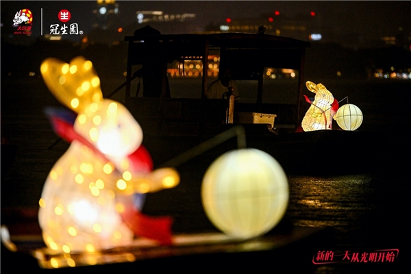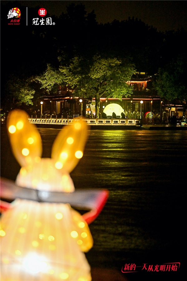 夜晚,西湖鼓声隆隆,多个大白兔的灯彩在溶溶月色下透着星光。此刻,我们共同点亮中秋团圆的快乐时光,共同许下但愿乐长久的美好祝愿,今秋,就和大白兔一起,分享月饼、共赏明月,快乐共此时!