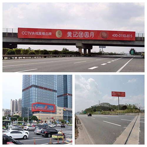 广西月饼市场竞争激烈,“酒香也怕巷子深”,广告是企业营销推广的重要手段。在南宁地铁1号线投放全车广告,在地铁1、3、4号线以及在华丰城、金湖广场电信大厦、朝阳西关新天地、丽源天际、小区电梯等投放视频广告,在兰海高速公路南宁至北海段、江南万达十字路口、东葛新民路口、北大路天桥、明秀路天桥、小区道闸等投放广告牌……黄记团圆月的广告遍布南宁市区,占据了月饼行业广告的领先位置。