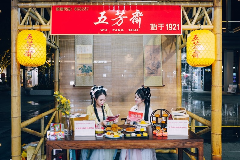 与此同时,在古风雅集内,五芳斋还设立了直播间,线上线下可同赏古韵国风魅力,共享中秋团圆气氛。9月19日的20:30至21:30,五芳斋惊喜福利官&五芳斋实业股份有限公司副总经理徐炜女士空降直播间,与直播间粉丝一起话家常、品月饼、赏圆月。