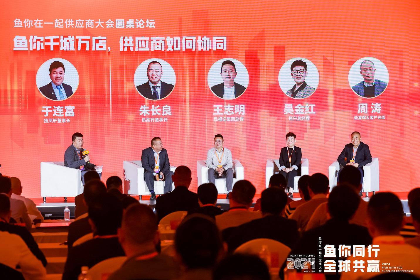 在以“鱼你千城万店,供应商如何协同”为主题的圆桌对话中,独凤轩董事长于连富,良品行董事长朱长良、民福记集团总裁王志明、恒兴总经理吴金红、新夏晖大客户总监周涛等嘉宾,从不同角度带来各自的经验与见解,深度探讨万店国际化规模下,连锁餐饮品牌应如何构建更具竞争力的供应链壁垒。