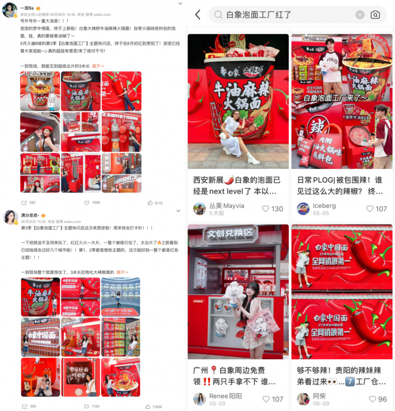 这一季通过2米高巨型火锅面桶、3米长巨物化大辣椒及六大趣味互动区域,把第3季【白象泡面工厂】打造成年轻人城市打卡新地标,为消费者提供了一场特别的工厂主题沉浸式创新互动体验。