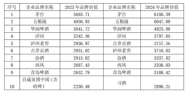 2024年华樽杯品牌价值报告中,习酒取代了百威英博,进驻前十,至此前十名中终于有了第二家酱香型白酒企业,彰显出酱酒强劲的增长动力。