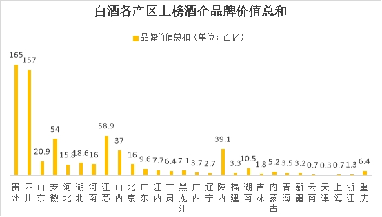 从酒企品牌价值来看,贵州、四川、安徽、山西、陕西表现突出。对比这些地区的酒企数量,贵州和四川数量多,酒企品牌价值也高!相比之下,山西和陕西酒企数量较少,但品牌价值高,这主要归功于山西汾酒、陕西西凤酒在各自香型中的龙头地位。由此可见,占据某种香型的头部位置的酒企,可以明显拉动归属地的品牌价值,营造出优质产区效应。因此,白酒企业应当进一步挖掘自身特色,打造专属香型。