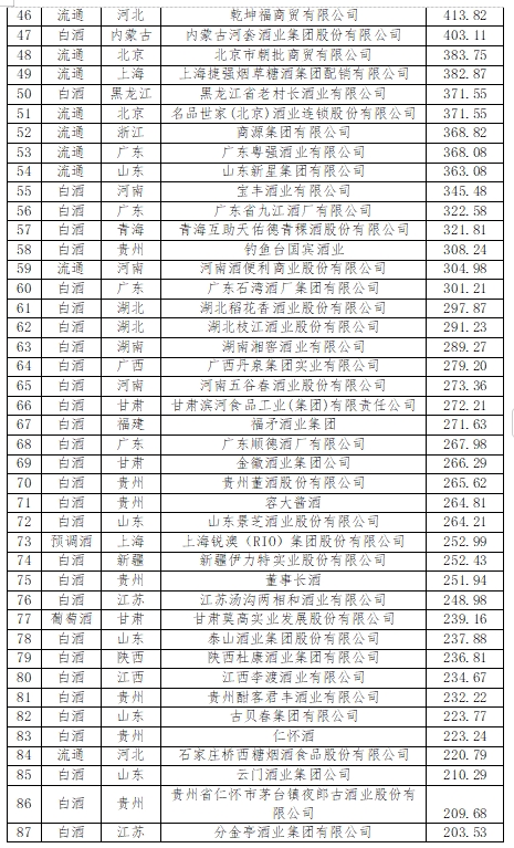 华樽杯第十六届中国酒类品牌价值200名单如下: