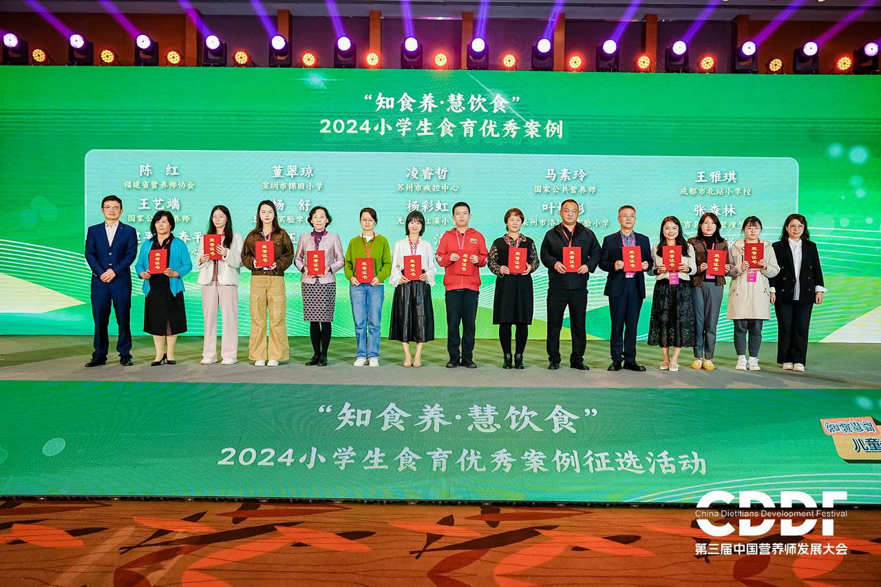 11月1-3日的2024中国营养师发展大会上,“知食养·慧饮食”2024年小学生食育优秀案例征选活动优秀案例颁发仪式隆重举行,来自全国的30位优秀食育教育工作者案例获得了优秀案例荣誉。