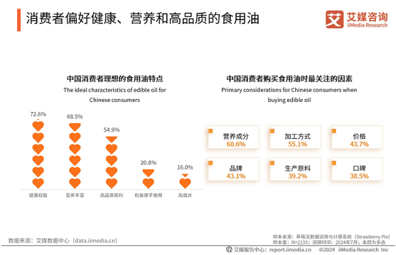iiMedia Research(艾媒咨询)调研数据显示,72.6%的消费者将“健康减脂”作为食用油首选标准,68.5%注重“营养丰富”。牛油果油作为一种从牛油果的果肉中提取的天然植物食用油,因其富含单不饱和脂肪酸、维生素E等营养成分,正成为健康饮食的新选择。