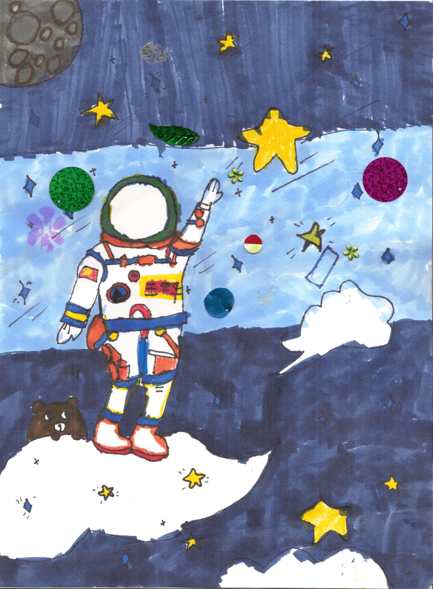 还记得航天女神王亚平返回到地球时,刚出舱门的她向全世界宣布:“摘星星的妈妈回来了。”随后,她把事先准备好的一颗“玩具星星”送给了女儿。如今她的女儿赵芸熙也参与了本次活动并发来绘画作品。