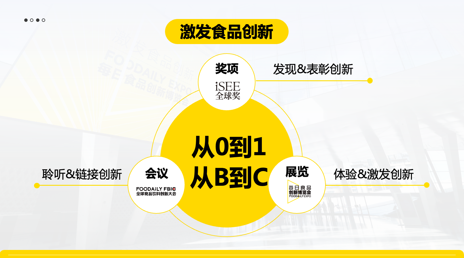 Foodaily创博会负责人Elk王博表示,Foodaily创博会是以“创新产品及创新品牌”为核心打造的会-展-奖三位一体的【创新食品展】,通过“iSEE全球奖”发现&表彰创新,通过“Foodaily FBIC全球食品饮料创新大会”聆听&链接创新,通过“Foodaily创博会”展览体验&激发创新。