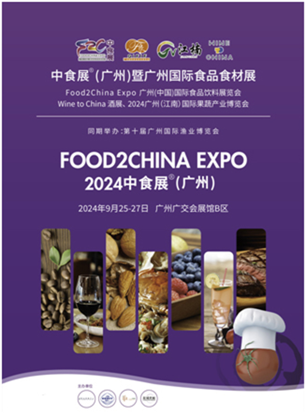 为积极响应国家畅通国内大循环、促进国内国际双循环,促进乡村振兴,实现共同富裕等重大战略,依托粤港澳大湾区,赋能消费升级和提升百姓生活品质,由商业发展中心、中国国际贸易促进委员会广州市委员会、广东省进口食品协会以及星域世展展览(广州)有限公司共同主办的2024中食展(广州)暨广州国际食品食材展、Food2China Expo广州(中国)国际食品饮料展览会、Wine to China酒展、广州(江南)国际果蔬产业博览会(简称:2024中食展®(广州)),将于2024年9月25-27日在广州广交会展馆展馆B区举行,同期举办第十届广州国际渔业博览会。