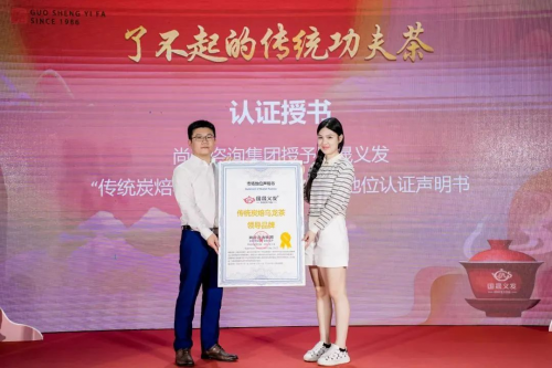尚普咨询集团授予国晟义发“传统炭焙乌龙茶领导品牌”市场地位认证声明书(图片来源:主办方供图)
