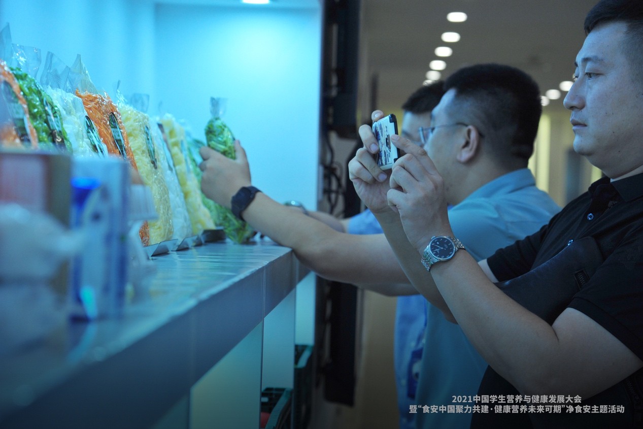 7月25日上午,由2021年第二届中国学生营养与健康发展大会与会人员,组成的百人公益工业研学旅行考察团走进通辽净食安进行参观。在工作人员讲解下,详细了解了净食安的食品安全标准体系和全新模式,对净食安的高度标准和细节把控表示高度赞誉,并对全新模式诞生下的净食安系列产品产生浓厚兴趣。