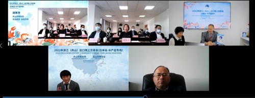 舟山市商务党组成员、总经济师胡寒萍在致辞中表示,水产是舟山传统优势产业,日本是舟山主要的出口市场。目前,舟山共有水产企业350家,出口企业120家,渔业从业人员10万余人。2021年,舟山市出口日本水产品总额17.7亿元人民币,占全市水产品出口的26.2%,居出口国市场首位。今年,随着《区域全面经济伙伴关系协定》(RCEP)的正式生效,舟山与日本的水产品贸易合作势必更加紧密。此次线上展会以“线上+线下”联展的模式,帮助舟山水产企业开拓市场,提振信心,促进舟山水产行业稳定发展。