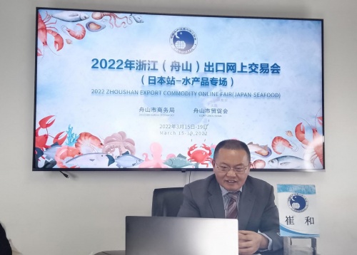 3月15日下午,2022浙江(舟山)出口网上交易会(日本站-水产品专场)暨线上启动仪式正式举行。本次活动由舟山市商务局、舟山市贸促会主办,浙江时代国际展览服务有限公司承办,中国水产流通与加工协会、日本东京大阪水产展组委会、日本水产协会协办。
