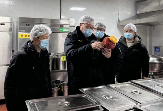 执法人员在学校食堂后厨检查