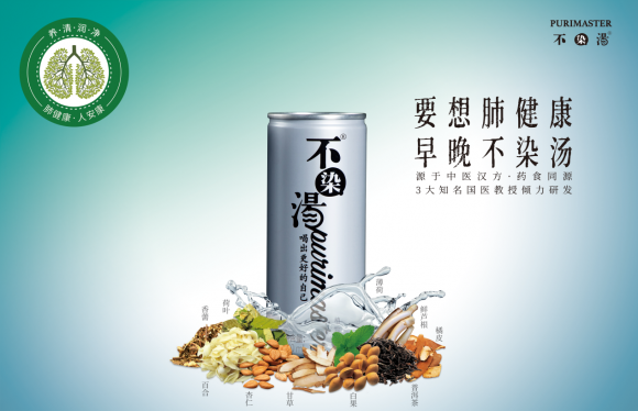 大唐汉方和中国烟草联合推出的不染汤,特别针对长期生活在吸烟、雾霾、粉尘、汽车尾气污染等环境问题中的人群,配方精选百合、白果、杏仁、橘皮、普洱茶等10味药食同源原料,以现代科学萃取方式提炼而成,100%纯植物,老年、青少年、孕产妇皆可饮用,四季常喝能提升肺部功能和活力、增强身体免疫力、有效防治肺部组织纤维化,清洁肺部、润肺止咳、祛痰缓急效果显著,是中医古老药食调理智慧的结晶,受到我国知名中医苏宝刚教授倾情推荐。 作为云南省生物制药重点龙头企业,大唐汉方此次携手中国烟草推出这款不染汤,也是中烟史上第一款“非烟类”产品,其配方源自上世纪90年代初,我国大批工人曾因长期处于高污染工作环境,出现矽肺病的大规模爆发,许多患者遍寻治疗无果,在国家工业部委托下,北京中医学院教授、名中医五老之一的苏宝刚、李庆业等三位专家教授结合40年临床治疗心血研制出了不染汤配方,使得矽肺病得以治愈。临床经验显示,不染汤配方对多种肺部疾病辅助治疗也有显著效果。在此次新冠肺炎的疫情防护中,入选云南省驰援武汉医疗队防疫物资,被投入一线使用。