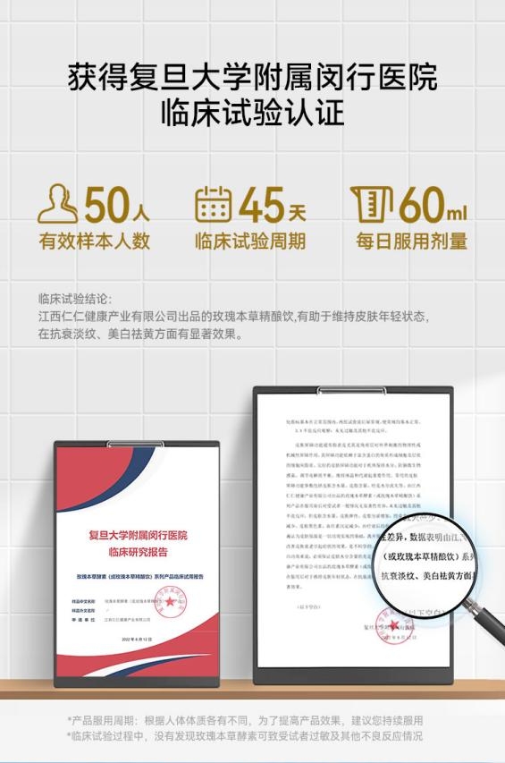 其主打品“仁和酵能·玫瑰本草精酿饮”,就获得了上海复旦大学附属闵行医院盖章的临床试验报告,证实产品在“抗衰淡纹、美白祛黄”方面具有显著效果;并且入围了第四届ISEE全球食品创新奖、创新技术提名榜,以及荣膺第五届“天然新势力”创新产品评选技术创新奖,在食品功能化发展及创新技术应用方面深受专家认可。