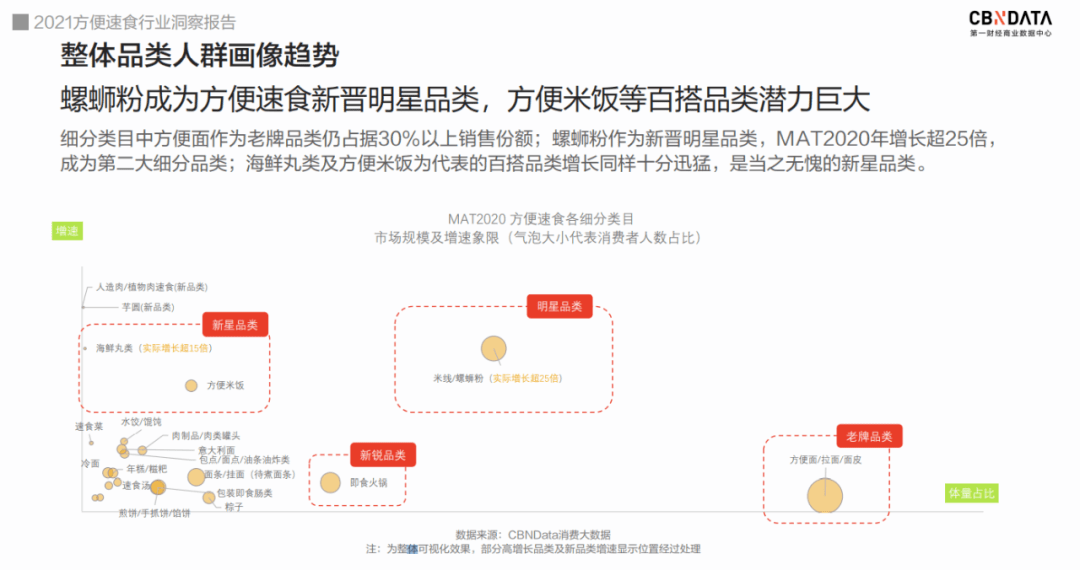 正是因为这些新型品牌的加入与传统品牌的积极创新,形成头部品牌的良性竞争氛围,方便速食也得以进入更加日常且多元的生活场景,从而迸发出更多新的活力。