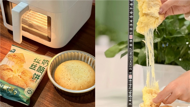 七鲜此次同步重磅推出极具内蒙古特色的七鲜拉丝奶酪饼。其选用内蒙河套雪花粉搭配新西兰进口黄油和原制马苏里拉干酪,相较于同行业产品,干酪含量更高、含水量更低,简单加热便可达到外层酥软、内层拉丝流心的状态,吸引消费者在网上开启“拉丝”的长度挑战。