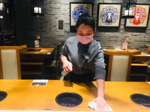 为了在“一人一锅”健康营养的基础上,让大家在这个阶段,也能在更加安全的环境里享受美食,呷哺呷哺对门店餐厅的安全防护也进行了一系列强化。餐厅的吧台、地面、厨房操作间、座椅等每天必须消毒2次,并保持餐厅24小时通风,在岗员工每天也要接受体温检测,戴好口罩,不与顾客面对面交流,保证到店顾客的用餐安全。