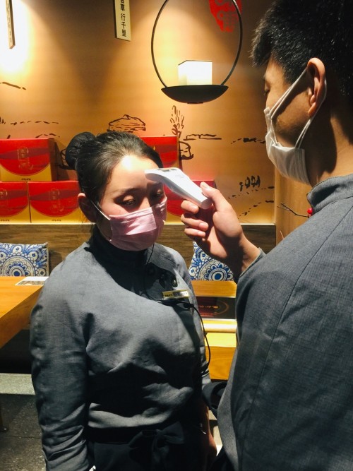 有的后厨工作人员,及前台对接骑手的派送人员和外卖打包人员,也都要保证一天3次的体温检测,并做好记录,发现异常及时就医。所有员工上岗时则要佩戴口罩,不断洗手消毒,确保每一份外卖餐品的干净卫生。