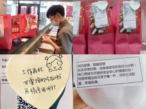 呷哺外卖随单赠送的温馨小食和暖心寄语