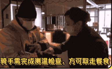 呷哺呷哺员工对外卖骑手进行测温检查