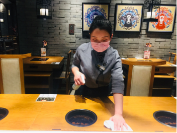 呷哺呷哺员工正在对餐厅消毒