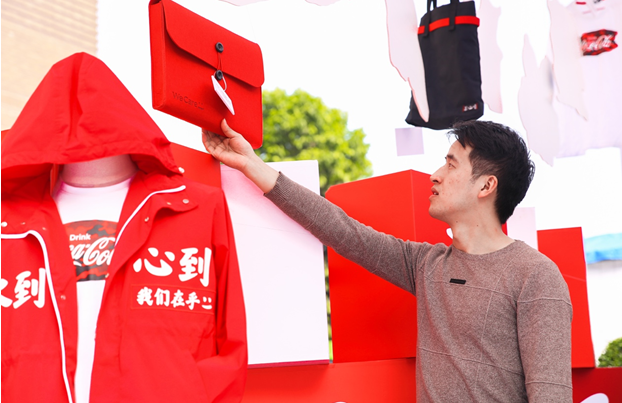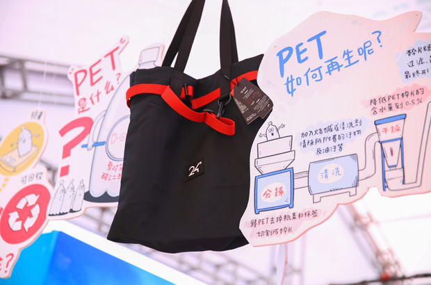 废弃的饮料瓶如何通过回收再利用制造为一件时尚单品,这是最吸引市民驻足观看的亮点。让每一个饮料瓶都不“瓶”凡,物尽其用,天下无废。用8个瓶子制成一件T恤,12个瓶子制成一件夹克,24个瓶子制成一个“24包”……其中每个“24包”都有一张由曾经服役于灾区帐篷剪的一块布制成的身份证,且每卖出24个“24包”可口可乐就会向灾区捐赠一顶帐篷。