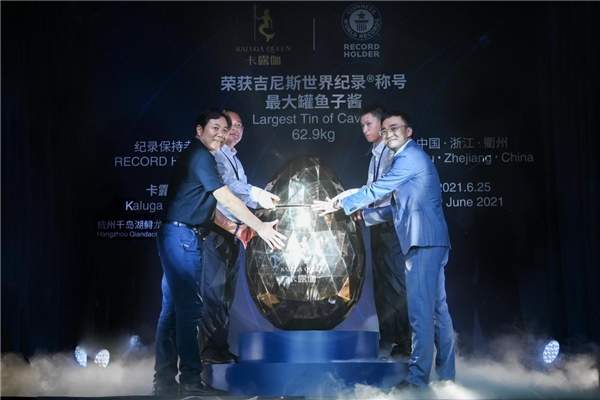 没有什么比在历史上留下自己的名字更值得纪念与庆祝的了。在晚会现场,重达62.9公斤价值250万元奢品级的卡露伽15年鳇鱼子酱,被精心安置在金色蛋型容器中,如一颗稀世罕见的瑰宝,在万众瞩目的见证下,经过吉尼斯官方认证官的现场审核,宣告挑战成功!卡露伽创造了新的世界纪录!打破了2017年迪拜亚特兰蒂斯的世界纪录,成为新的“最大罐鱼子酱“纪录的保持者!斩获吉尼斯世界纪录TM荣誉,坚定了鲟龙科技”做世界最好的鱼子酱,打造百年老店“的发展愿景,也为卡露伽品牌发布会的圆满成功举办增添了浓墨重彩的一笔。