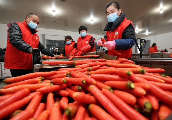 11月29日,在陕西大荔县红萝卜主产的的官池镇最大的优美果蔬专业合作社,当地妇女王香娃高兴的说她已经十几年在这里从事水洗萝卜加工,每年收入都在四五万元,像她这样就近在家门前打工挣钱的就有30多人,这是陕西省大荔县官池镇红萝卜产业“种”出十五亿,带动了一二三产业发展的一个缩影。