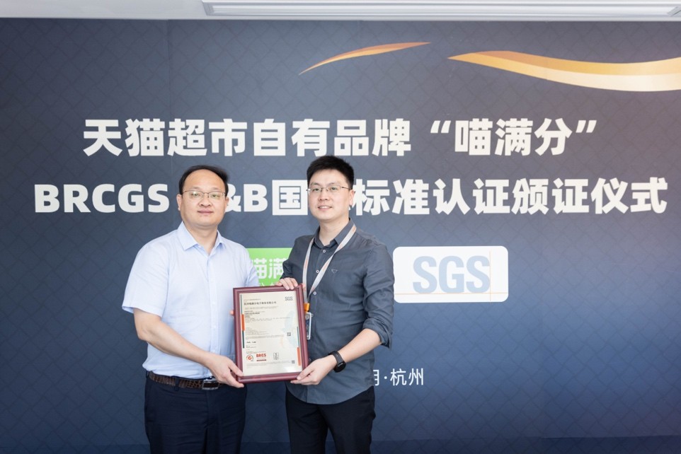 8月18日,天猫超市旗下自有品牌“喵满分”正式获得通标标准技术服务有限公司(简称SGS)颁发的BRCGS A&B认证证书,标志着旗下食品及宠物食品安全质量获国际权威认可。
