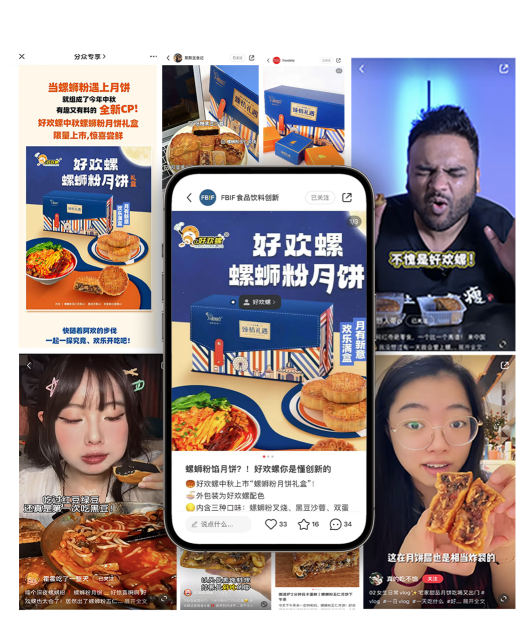 好欢螺螺蛳粉月饼礼盒一经上市,便引得食品行业的关注和各类达人的品尝和点赞。好欢螺螺蛳粉月饼礼盒在社交媒体上引起广泛讨论的同时,也炸出了一堆螺蛳粉资深爱好者和月饼尝鲜爱好者,掀起了一股螺蛳粉月饼的新风潮。