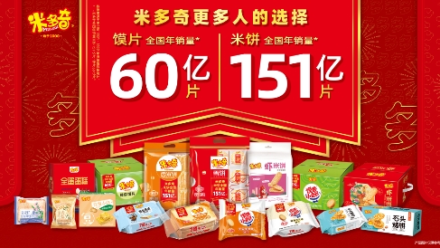 在代餐零食米饼、馍片品类,也存在着一个隐形冠军品牌——深耕休闲零食领域23年的“米多奇”。作为一家粮食精深加工的食品制造企业,米多奇主要生产米饼、馍片、馍丁、蛋糕、石头饼等系列休闲食品。在坚守高品质生产健康食品的同时,其不断与时俱进,创新研发多元化产品,销往全国30多个省市自治区。其馍片系列产品全国年销量第一,米饼系列产品全国年销量第二,已实现馍片年销量60亿片,米饼年销量151亿片的成绩。在众多消费者心中,“米多奇”早已是馍片品类的代名词,是休闲食品行业的隐形冠军。