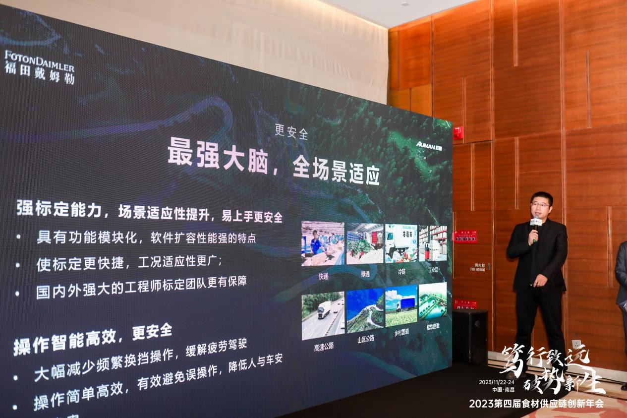 在欧曼行星自动挡中卡产品推介会上,中物联食材供应链分会常务副秘书长于凤龙表示,为积极响应国家食品安全政策,推动食材流通体系向着更安全、更规范的流通方向发展。中物联食材供应链分会携手福田汽车体系打造的“护航者联盟"服务模式,联合行业相关龙头企业进行“护航者“联盟体系隆重发布,为食材供应链企业建立系统服务方案,以安全、节能理念引领行业高质量发展。
