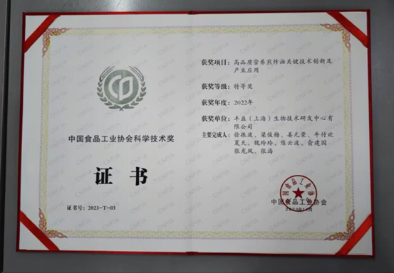 2023年11月30日,2023“全国食品工业科技进步工作会议暨中国食品工业协会科学技术颁奖大会”在南京顺利召开,益海嘉里凭借“高品质营养煎炸油关键技术创新及产业应用”项目荣获2022年度“中国食品工业协会科学技术奖”特等奖。