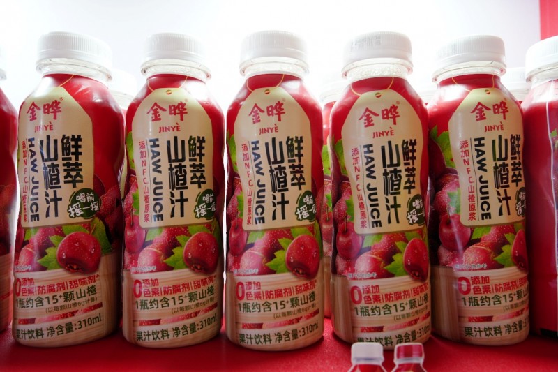 金晔食品的另一款明星产品——鲜萃山楂汁,也在本届糖酒会上备受关注。每一瓶鲜萃山楂汁都含有超过300克的高NFC山楂原浆,相当于每瓶约含50颗山楂,真正做到了原汁原味,保留了山楂的全部营养和美味。这款产品不仅满足了消费者对健康饮品的需求,更是对金晔食品“无添加”理念的完美诠释。