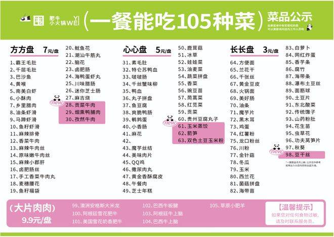 不同于呷哺的套餐制售卖形式,一围给顾客提供了105道菜,让顾客有充分的菜品选择权。
