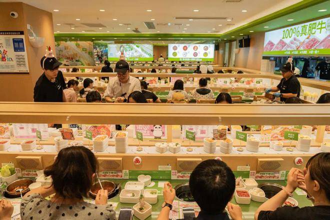 一围定位一人食火锅新潮品牌,采用回转小火锅的形式,一人一座一锅的用餐模式。